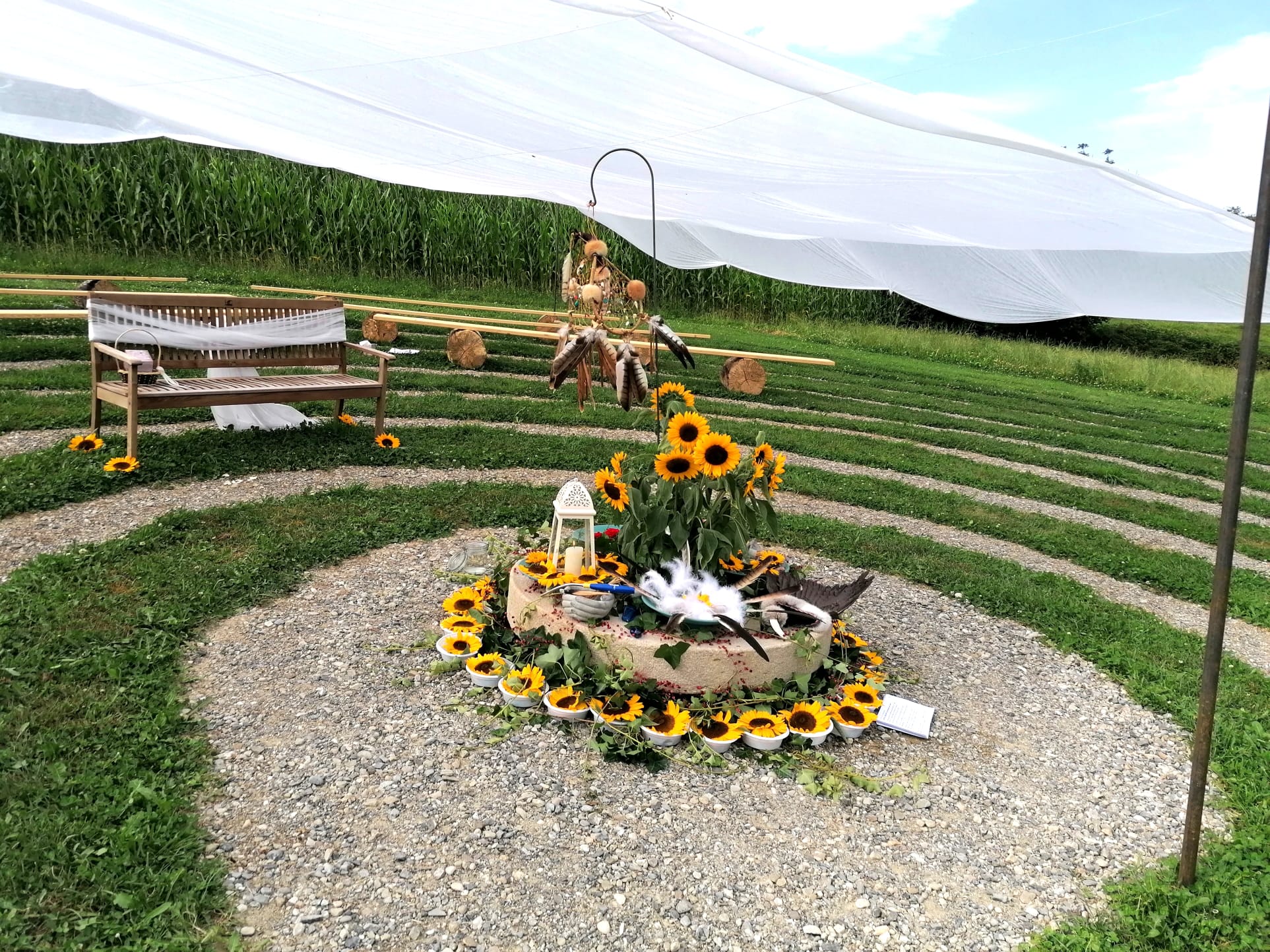 Zwei Paare haben hier geheiratet. Mit dem Himmel über sich und der Erde unter ihren Füssen standen sie im Kreis des Labyrinths und haben Ja gesagt, zum Leben, zur Liebe, zu einem neuen Anfang.