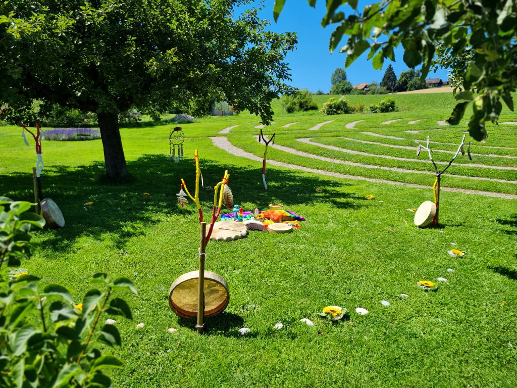 Zwei Paare haben hier geheiratet. Mit dem Himmel über sich und der Erde unter ihren Füssen standen sie im Kreis des Labyrinths und haben Ja gesagt, zum Leben, zur Liebe, zu einem neuen Anfang.